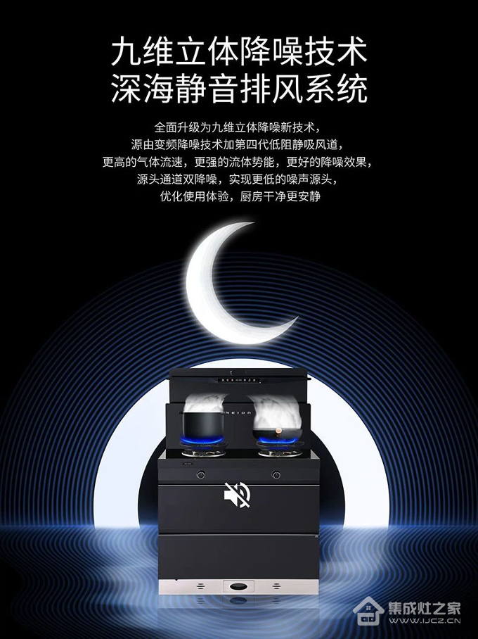 传统烟机的噪音常常让人烦躁不堪,而美大集成灶则全面升级为九维立体降噪新技术--深海静音排风系统,变频降噪技术加第四代低阻静吸风道,源头通道双降噪,将噪音控制在极低的水平。无论是日常烹饪还是家庭聚会,都能在一个舒适的环境中进行,让烹饪成为一种享受。