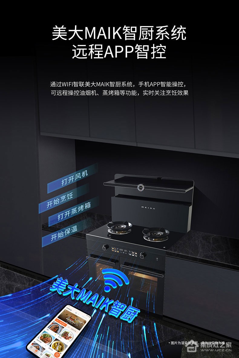美大集成灶的创新一体化设计,更是现代厨房的空间优化大师。将吸油烟机、燃气灶、蒸箱、烤箱、消毒柜等多种功能完美整合,一台设备堪比六台传统厨电,极大解放了厨房空间。嵌入式安装方式与橱柜完美融合,不仅节省了顶部和台面空间,更提升了厨房的整体档次和美观度,让厨房成为家中最迷人的空间智能操控系统的加入,让烹饪变得前所未有的轻松便捷。一键智能菜单内置多种烹饪模式,自动控制温度和时间,即使是不擅烹饪的新手也能轻松做出美味佳肴。手机互联功能让您可以远程监控烹饪进度,随时调整参数,多重安全装置包括熄火保护、漏电保护等,为家人提供全方位的安全保障。智能操控系统的加入,让烹饪变得前所未有的轻松便捷。一键智能菜单内置多种烹饪模式,自动控制温度和时间,即使是不擅烹饪的新手也能轻松做出美味佳肴。手机互联功能让您可以远程监控烹饪进度,随时调整参数,多重安全装置包括熄火保护、漏电保护等,为家人提供全方位的安全保障。